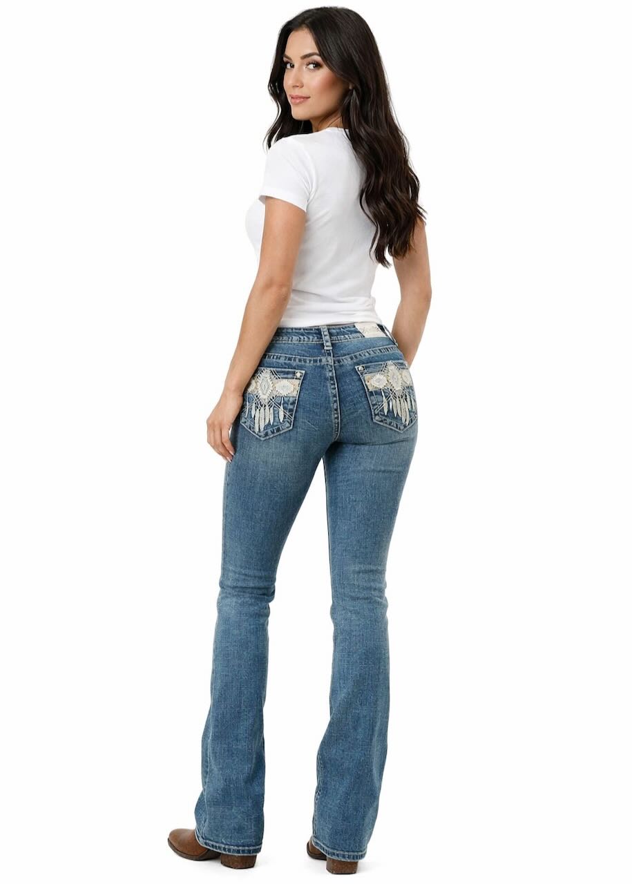 Jeans Grace in LA Bootcut Feather Embellished Pocket in Medium Wash