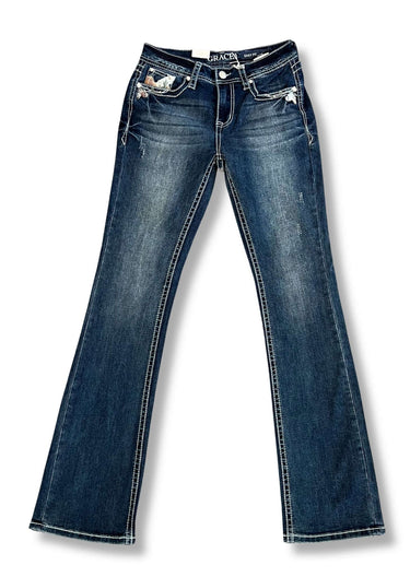 Jeans Bootcut Grace in LA | Steerhead Embroidery Mid Rise Medium Wash