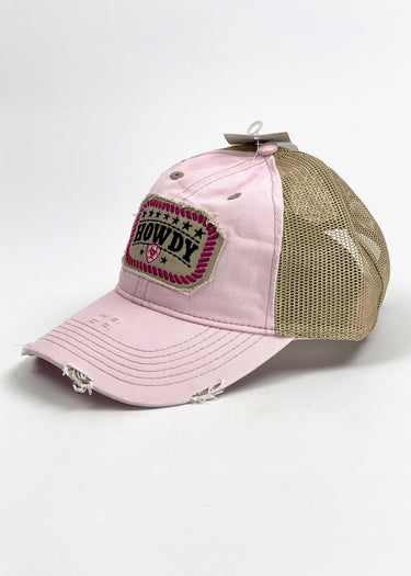 Ariat Howdy Distressed Patch Light Pink peaked cap