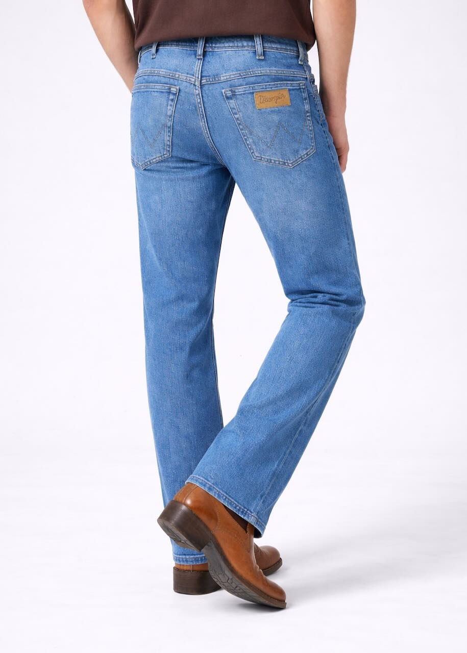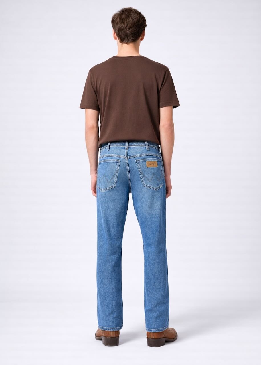 I Vaqueros Texas en New Favorite de Wrangler revisitan un gran clásico del estilo western con un toque contemporáneo y sostenible. Esta versión conserva el clásico corte recto con perneras rectas, confeccionado en denim azul ligeramente elástico para un confort cotidiano y una libertad de movimiento natural.