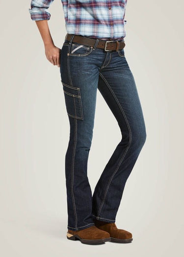 Los vaqueros Rebar DuraStretch Riverte Straight Leg Jean Nightride de Ariat para mujer son 2 veces más duraderos. Fabricados con DuraStretch™ para mayor flexibilidad y comodidad. El distintivo diseño del bolsillo trasero completa el look de estos pantalones de trabajo.
