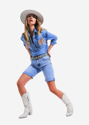 Chemise en jean pour femme avec plumes synthétiques par Q2