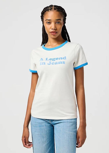 Un'icona dallo stile retrò! La T-shirt Ringer in Vintage White di Wrangler richiama l'estetica anni ‘90 con la sua vestibilità aderente e la grafica "A Legend in Jeans" stampata sul petto. Realizzata in jersey di cotone pesante 100%, assicura comfort e resistenza per tutto il giorno. Un capo essenziale per chi ama lo stile casual con un tocco vintage.
